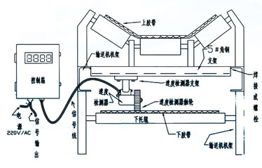 用途: 用于输送机带速检测及检测带式输送机在运行过程中出现的胶带与主动滚筒之间的打滑,防止打滑所造成的恶性事故